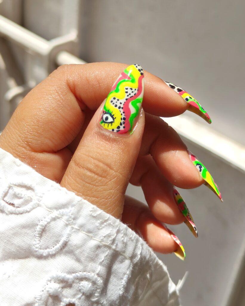 2. Neon Nail Art – Bright & Bold ⚡🌈
