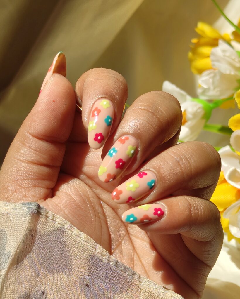 4. Cutesy Floral Nails – Playful & Pretty 🌸🌼