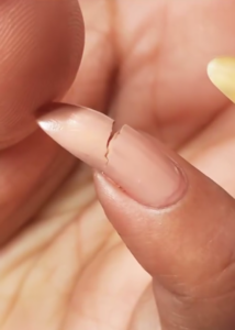 • Start splitting from the growth lines (growth lines are the horizontal lines on our nails that signify each nail growth period, might or might not be visible)